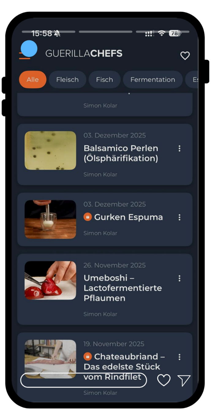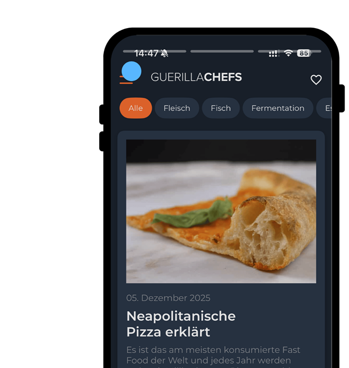 Die Guerilla Chefs App ist eine kostenfreie Lernplattform, die Kochwissen, Techniken und Rezepte aus der Praxis an einem Ort vereint.
